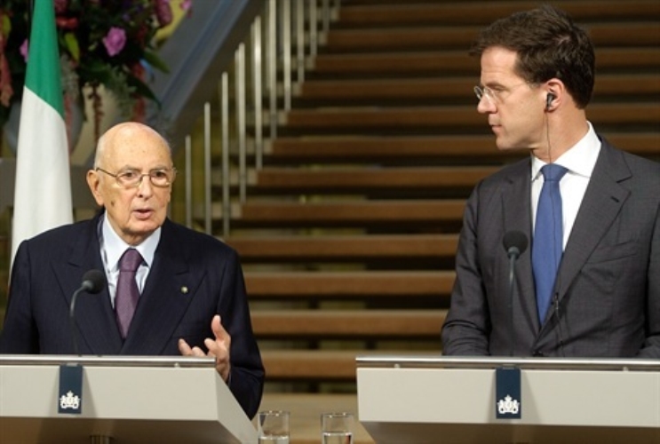 Il Presidente GIorgio Napolitano con il Primo Ministro dei Paesi Bassi Mark Rutte nel corso dell'incontro con la stampa