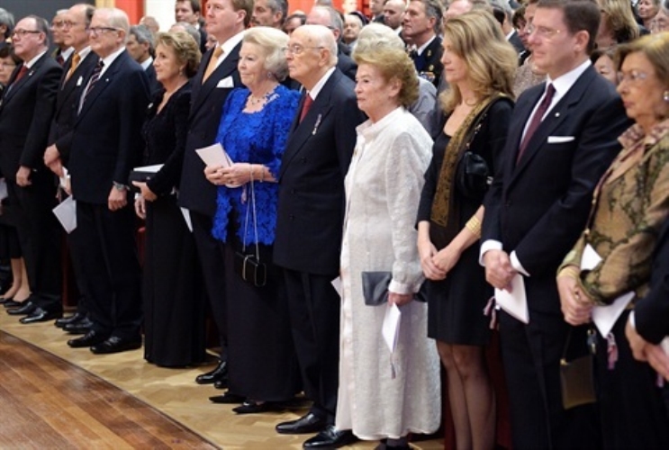Il Presidente Giorgio Napolitano, la signora Clio e S.M. la Regina Beatrix al Teatro Diligentia per il concerto di restituzione del Maestro Uto Ughi