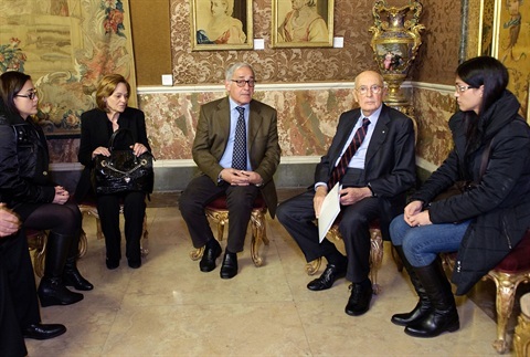Il Presidente Giorgio Napolitano con i familiari e la fidanzata di Pasquale Romano, vittima innocente della faida di camorra, ucciso a Marianella lo scorso 15 ottobre
