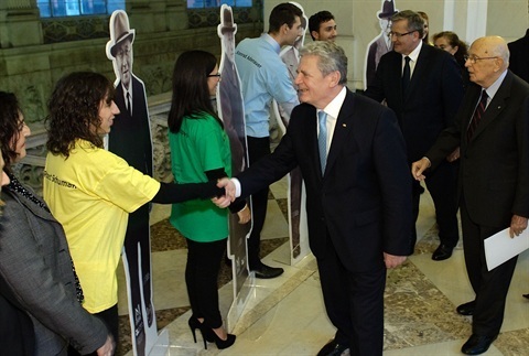 Il Presidente Giorgio Napolitano con i Presidenti Joachim Gauck e Bronislaw Komorowski a Palazzo Reale