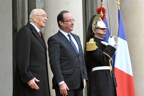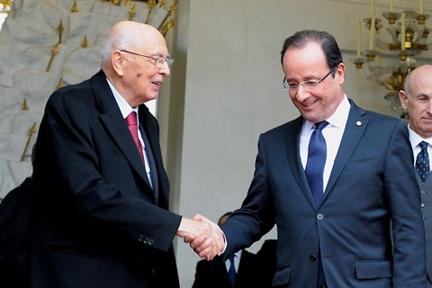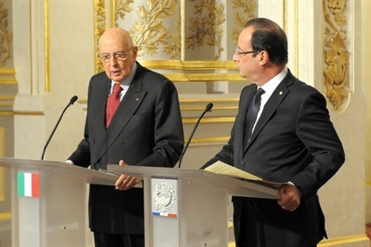 Il Presidente della Repubblica Giorgio Napolitano con il Presidente della Repubblica Francese Francois Hollande