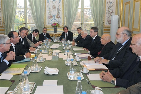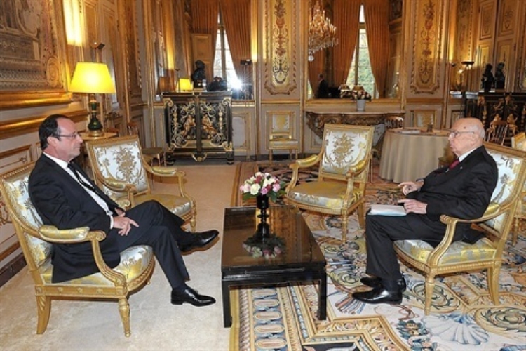 Il Presidente della Repubblica Giorgio Napolitano a colloquio con il Presidente della Repubblica Francese Francois Hollande