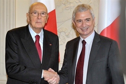 Il Presidente Giorgio Napolitano con il Presidente dell'Assemblea Nazionale francese Claude Bartolone