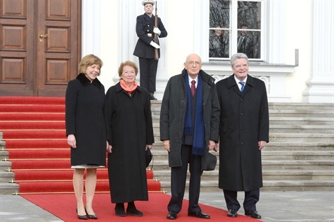 Il Presidente della Repubblica e la Signora Napolitano al Castello di Bellevue con il Presidente Federale Gauck e la Signora Schadt in occasione del pranzo di Stato
