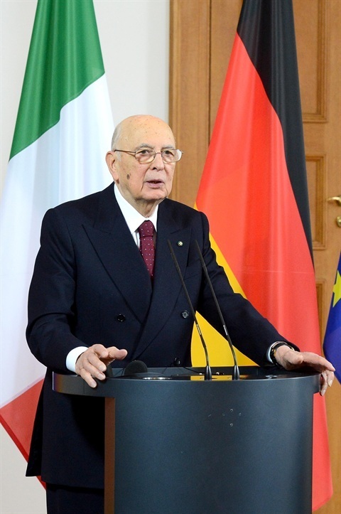 Il Presidente della Repubblica Giorgio Napolitano durante l'incontro con i "pensatori" tedeschi dedicato ai temi europei