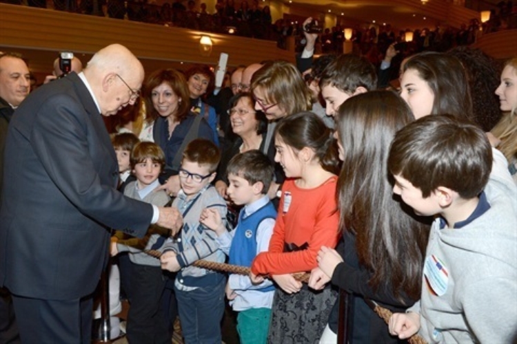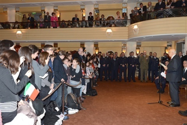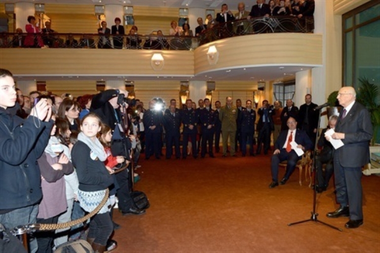 Il Presidente della Repubblica Giorgio Napolitano in occasione dell’incontro con la collettività italiana e con gli studenti di italiano