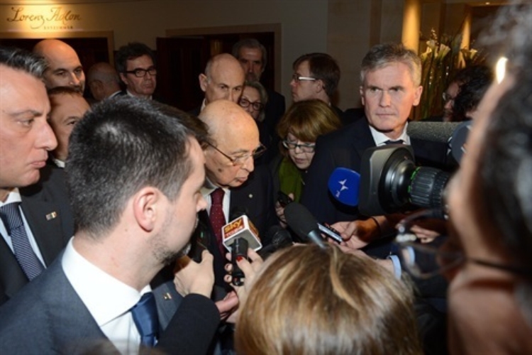 Il Presidente della Repubblica Giorgio Napolitano risponde ad alcune domande dei giornalisti