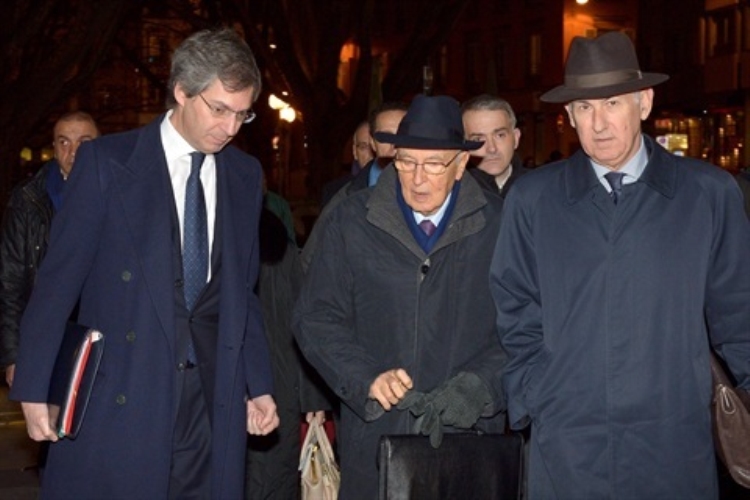 Il Presidente Giorgio Napolitano con l' Ambasciatore d'Italia a Parigi, Giandomenico Magliano all'Aeroporto di Strasburgo - Entzheim in occasione della visita al Parlamento Europeo