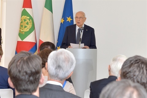 Il Presidente Giorgio Napolitano nel corso del suo intervento al comune di Monfalcone
