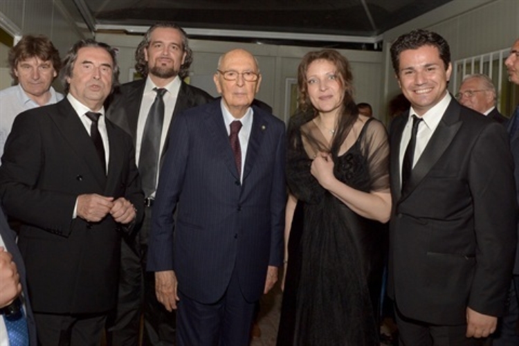 Il Presidente Giorgio Napolitano con il M° Riccardo Muti e gli artisti al termine della "Messa da Requiem" di G. Verdi
