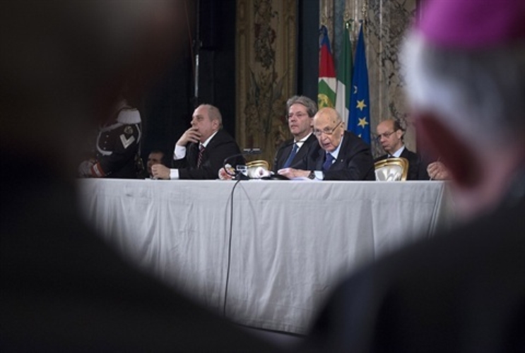 Il Presidente Giorgio Napolitano durante il suo intervento in occasione degli auguri di Natale e Capodanno da parte del Corpo Diplomatico
