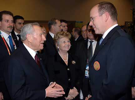 Il Presidente Ciampi con la moglie Franca e S.A.R. Alberto di Monaco, in occasione dell'incontro con i componenti del CIO.
