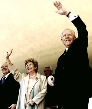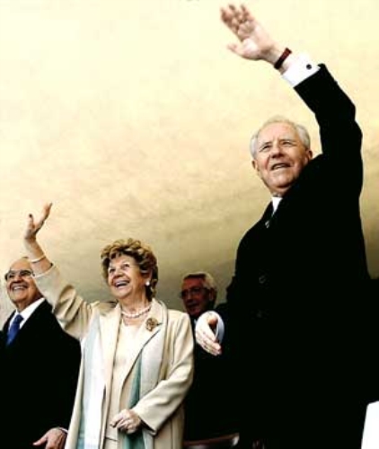 Il Presidente Ciampi la moglie Franca e l'On.Francesco Merloni, durante la visita privata nella cittadina marchigiana in occasione dell'inaugurazione della Mostra "Gentile da Fabriano e l'altro Rinascimento".