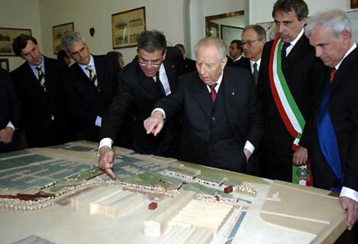 Il Presidente Ciampi osserva il plastico del nuovo porto della città.