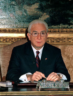 Il Presidente della Repubblica Francesco Cossiga sulla autovettura presidenziale saluta i cittadini