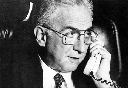 Primo piano del Presidente della Repubblica Francesco Cossiga mentre è al telefono.