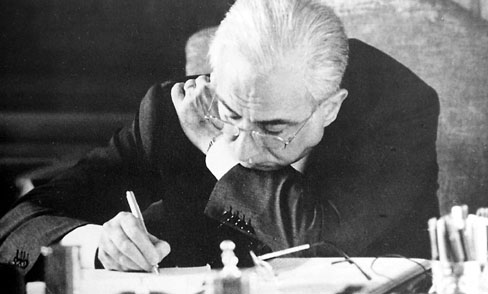 Il Presidente della Repubblica Francesco Cossiga al lavoro sulla sua scrivania