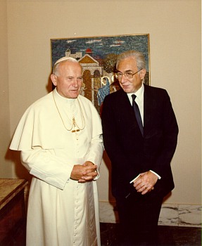 Il Presidente della Repubblica Francesco Cossiga con S.S. Giovanni Paolo II. 2 luglio 1985