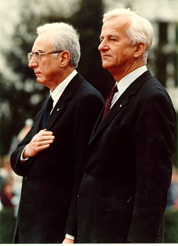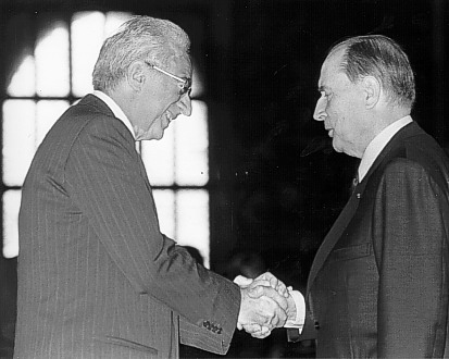 Il Presidente Cossiga con il Sindaco di Parigi Chirac in visita di Stato in Francia. 29 gennaio - 2 febbraio 1990