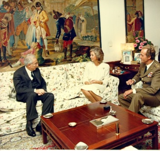 Il Presidente Cossiga con i Reali di Spagna durante la visita di Stato. Madrid, 18 settembre 1986