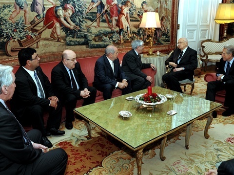 Il Presidente Giorgio Napolitano accolto all'Istituto di Studi Strategici da Michael Howard