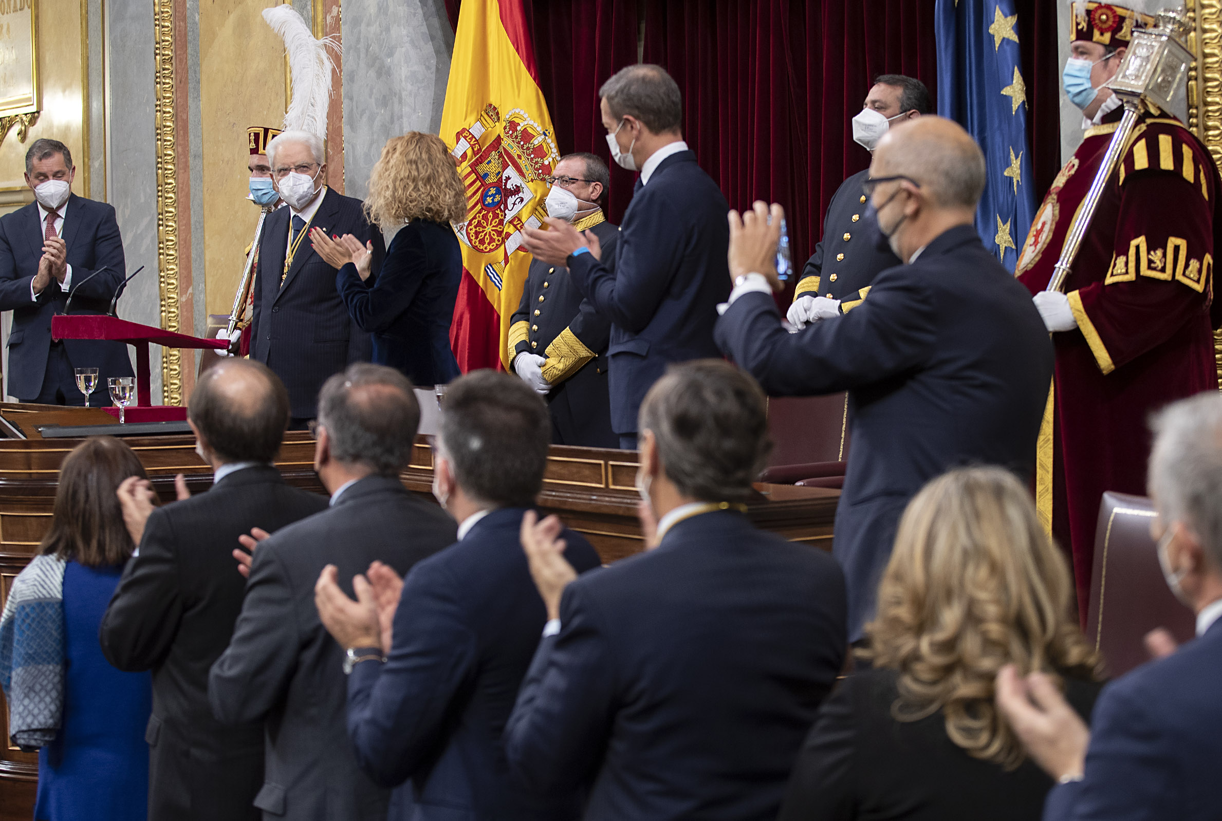 Il Presidente della Repubblica Sergio Mattarella al termine della prolusione ai membri delle Cortes