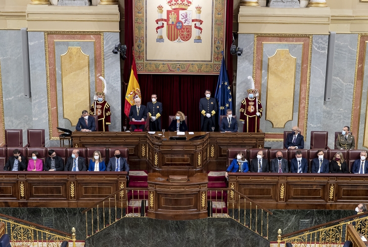 Il Presidente della Repubblica Sergio Mattarella con la Presidente del Congresso dei Deputati Meritxell Batet e il Presidente del Senato Ander Gil Garcia
