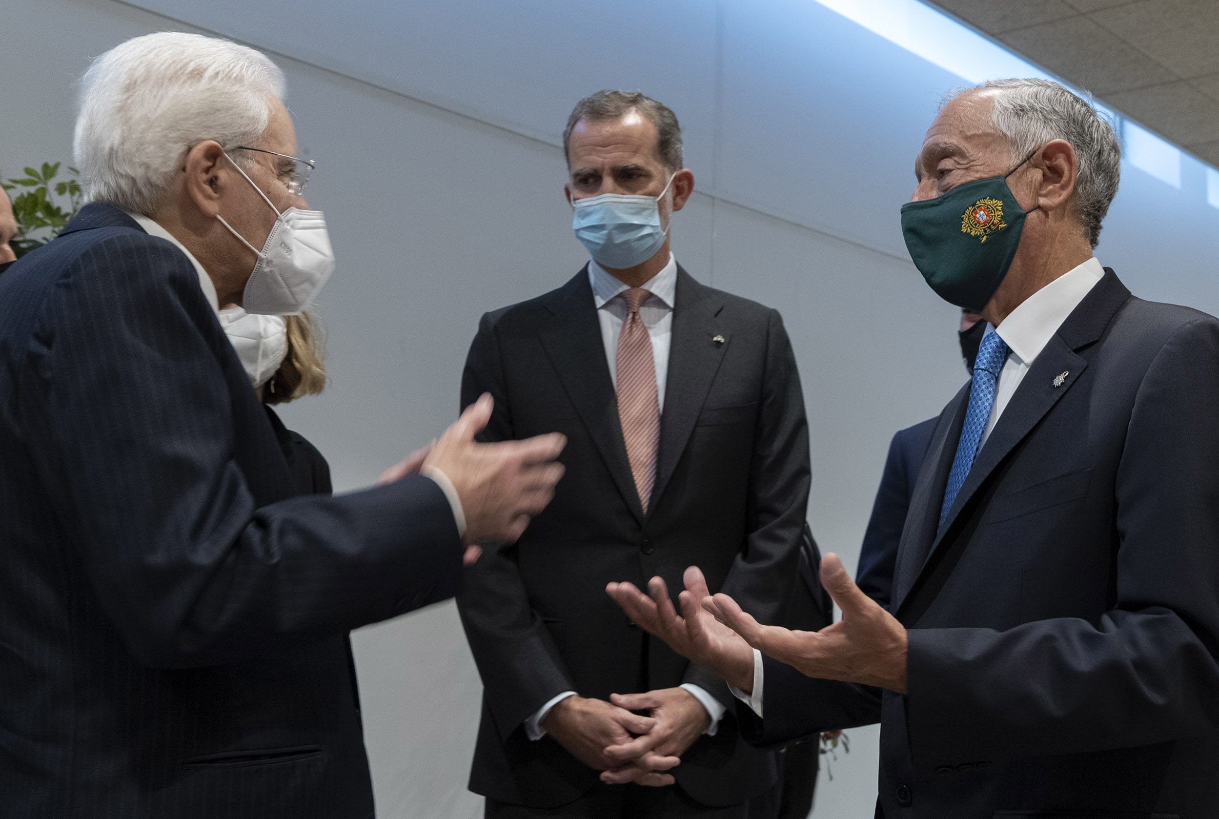 Malaga - Il Presidente della Repubblica Sergio Mattarella con S.M. il Re di Spagna e il Presidente della Repubblica di Portogallo, in occasione del COTEC