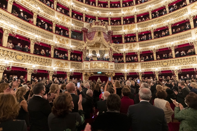 Il Presidente della Repubblica Sergio Mattarella saluta i protagonisti dell'opera “Otello” di Giuseppe Verdi