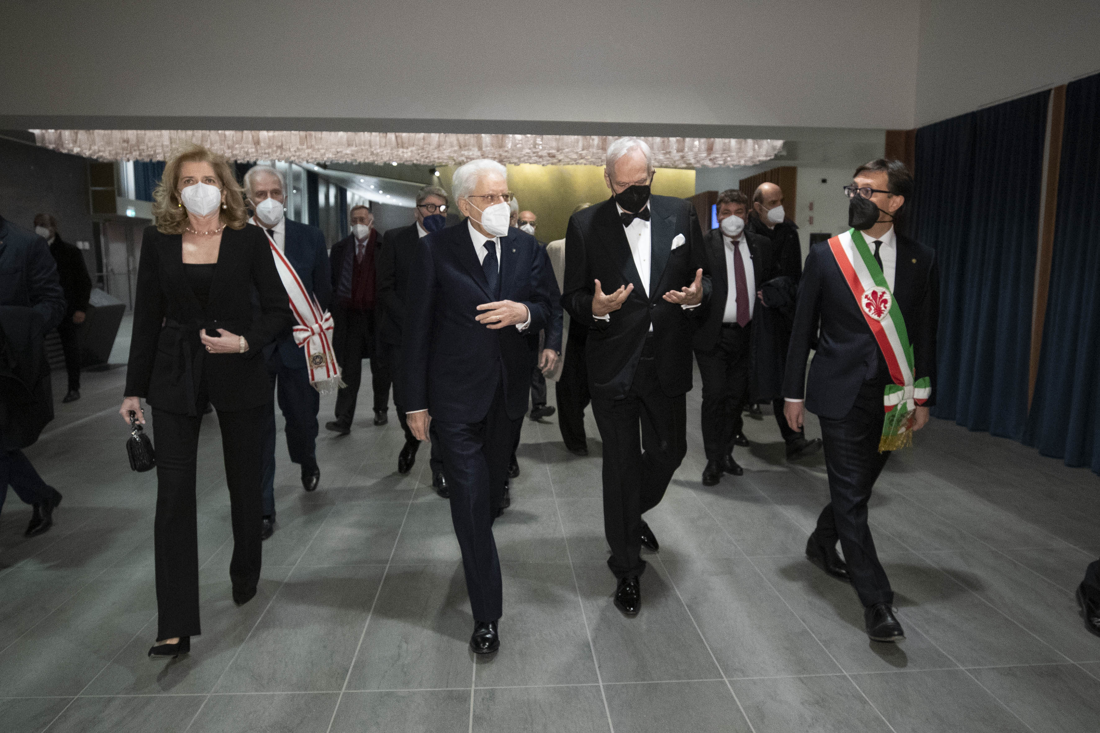 Il Presidente della Repubblica Sergio Mattarella e la Sig.ra Laura, al nuovo Auditorium del Maggio Musicale Fiorentino,accolto da Eugenio Giani, Presidente della Regione Toscana,e da Dario Nardella, Sindaco della Città metropolitana di Firenze, in occasione del concerto di inaugurazione,diretto dal Maestro Zubin Mehta