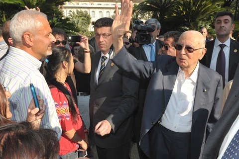 | Saluto del Presidente Napolitano al ricevimento nei giardini del Quirinale |