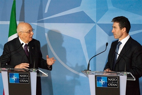 | Bruxelles, 2 marzo 2010 - Conferenza Stampa del Presidente della Repubblica Giorgio Napolitano e del Segretario Generale della Nato Anders Fogh Rasmussen alla Nato | ||