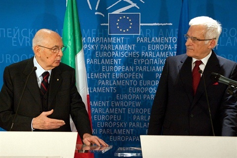 | Bruxelles, 4 marzo 2010 - Conferenza Stampa del Presidente Giorgio Napolitano e del Presidente del Parlamento Europeo Jerzy Buzek al Parlamento Europeo | ||